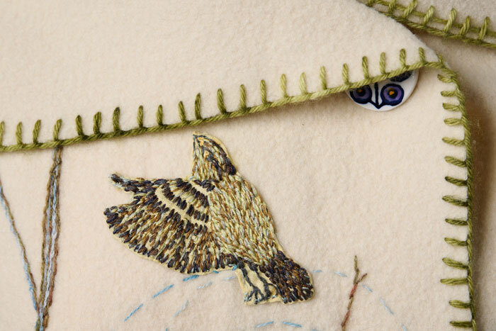 Hand-cut and sewn from a vintage wool family blanket. This coat is embroidered with the first birds of spring on our fields in Bowdoinham, Maine.