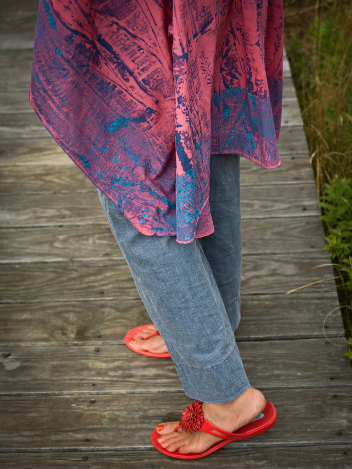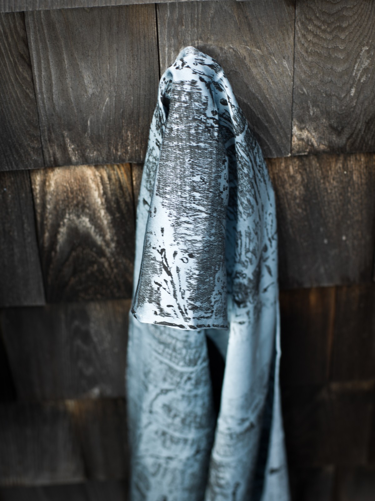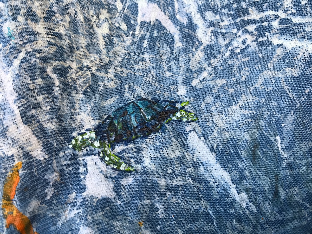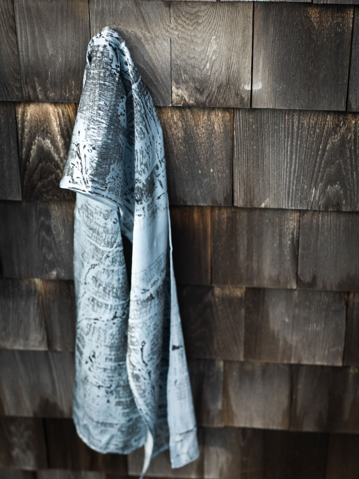 A line of hand-died scarves and clothing in silk and rayon printed with collagraph plates made with materials collected from the intertidal zone.