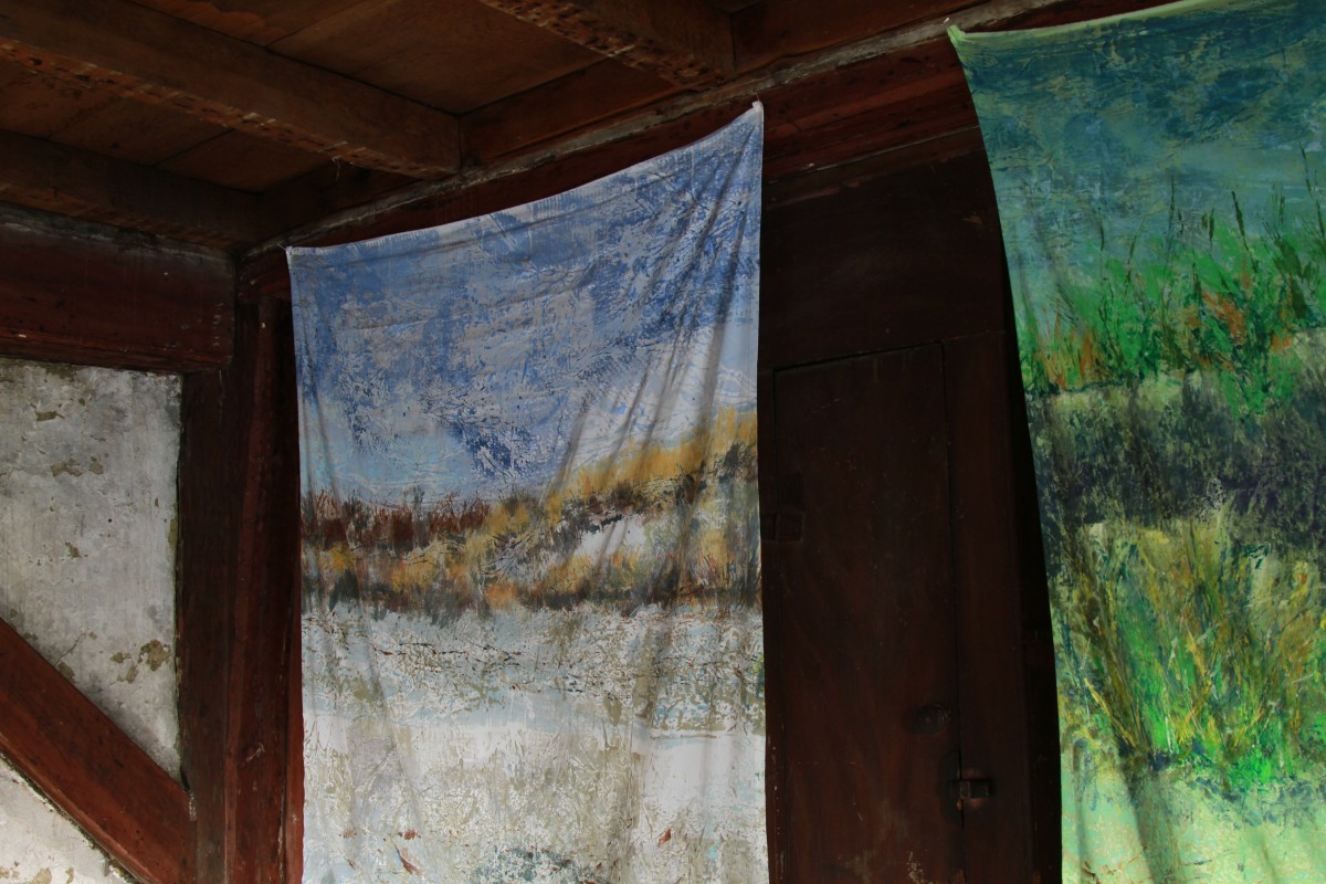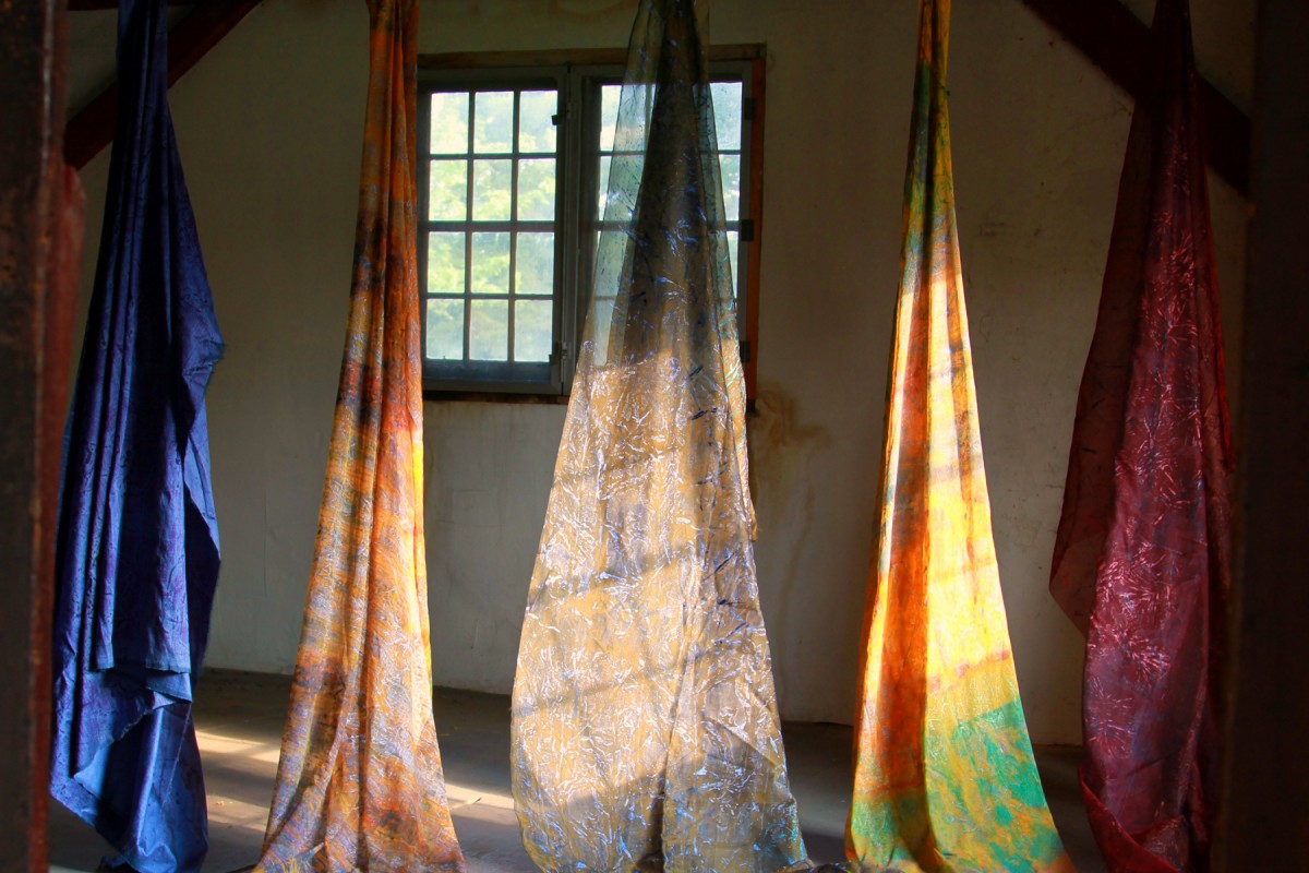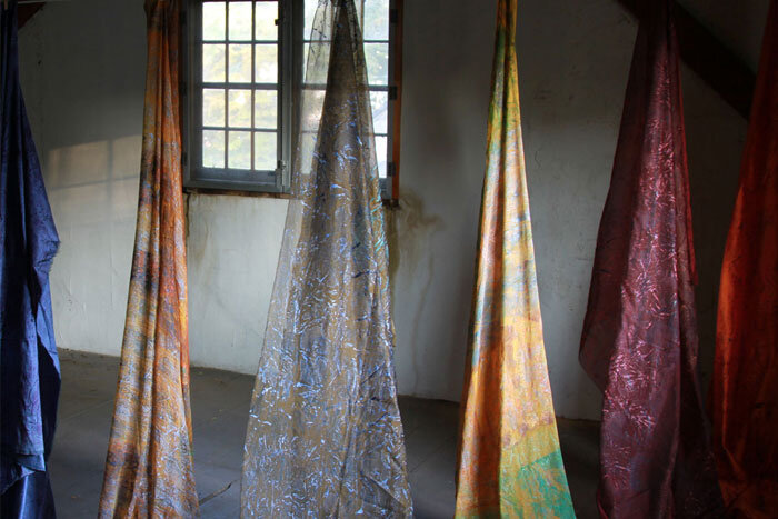 A project researching life on an 18th-century farmstead on Cape Ann. Created printing plates from surrounding current-day family farms using native crops and plants that were part of the landscape then and now. The exhibit surrounded the house in printed yardage, bringing color and life back to this historic structure in Gloucester, Massachusetts.